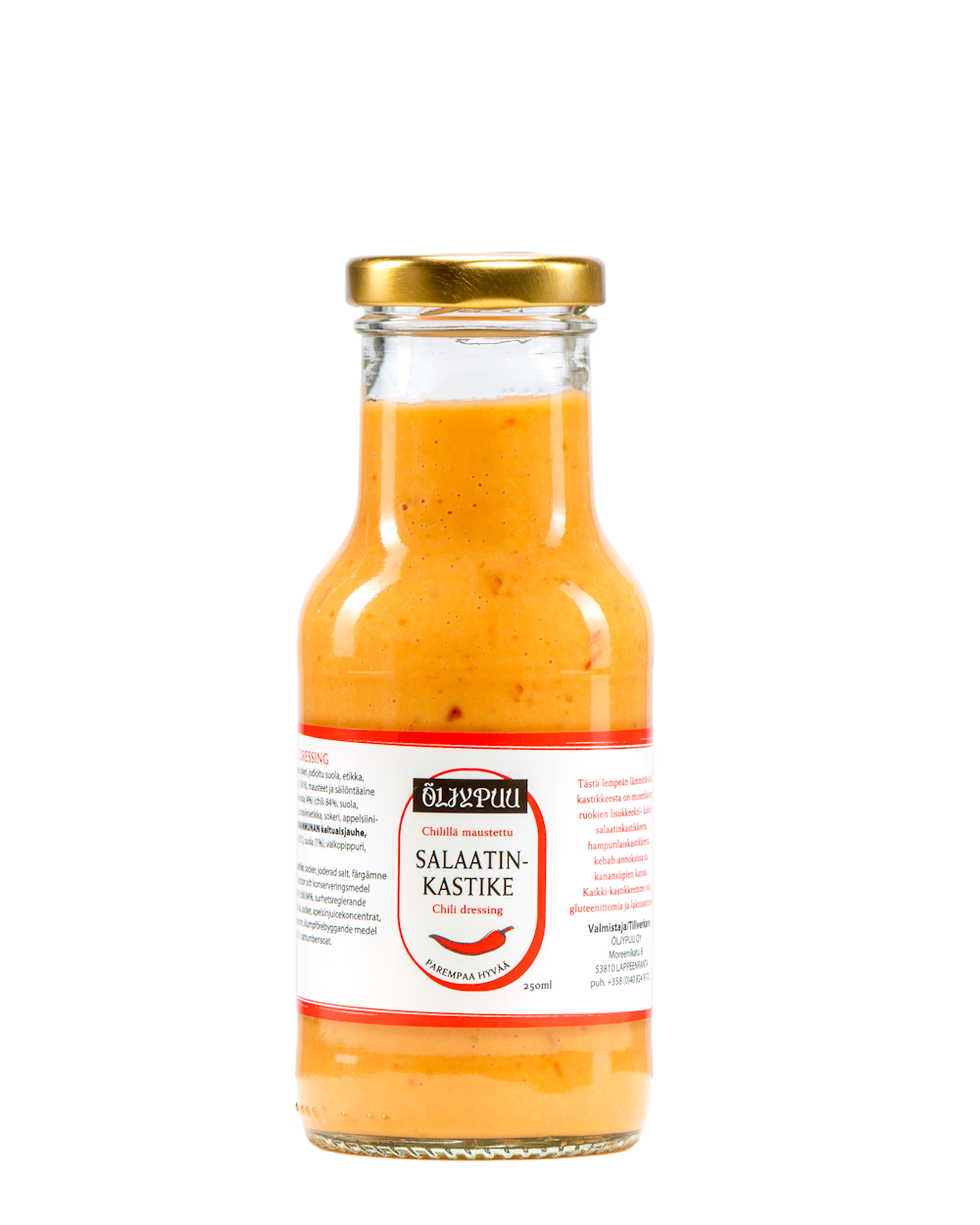 Chilillä maustettu sopivan tulinen salaatinkastike. Saatavilla hyvinvarustetuista K-kaupoista!